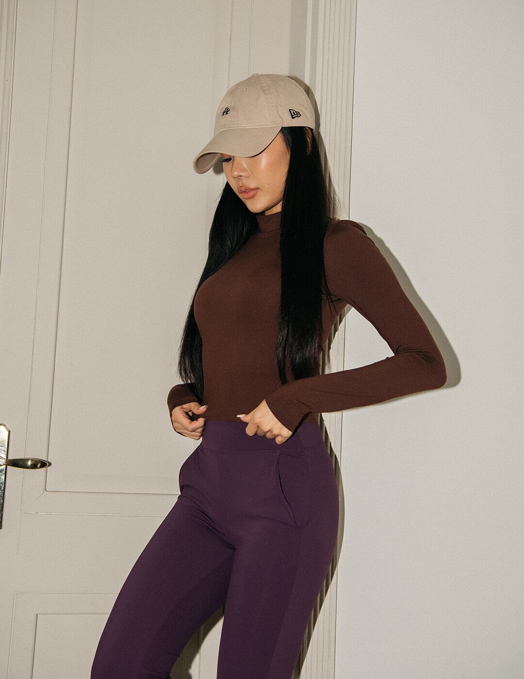 Soft Half Neck Top (Dark Brown)【TOPS-596】