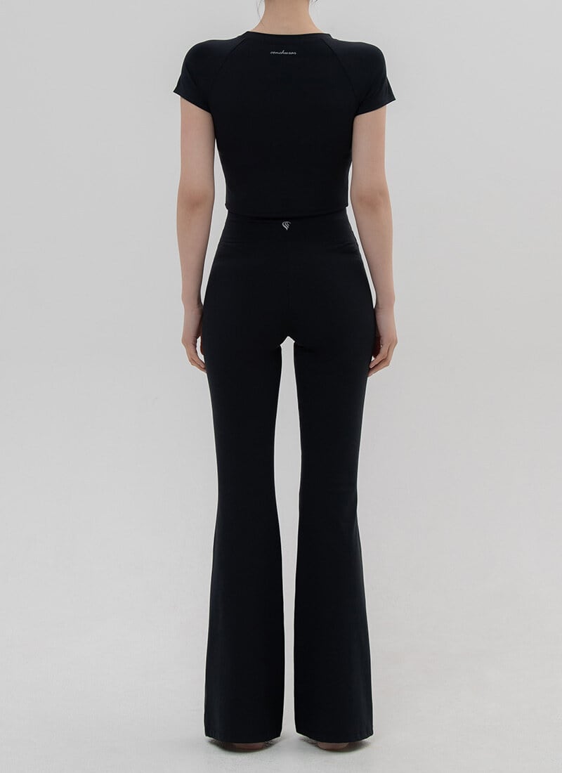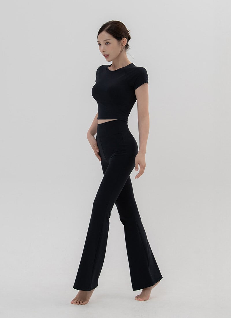 [SET] Conch All-in-One Crop Top+Wild Bootcut Leggings < NIGHT BLACK>【SET-141】