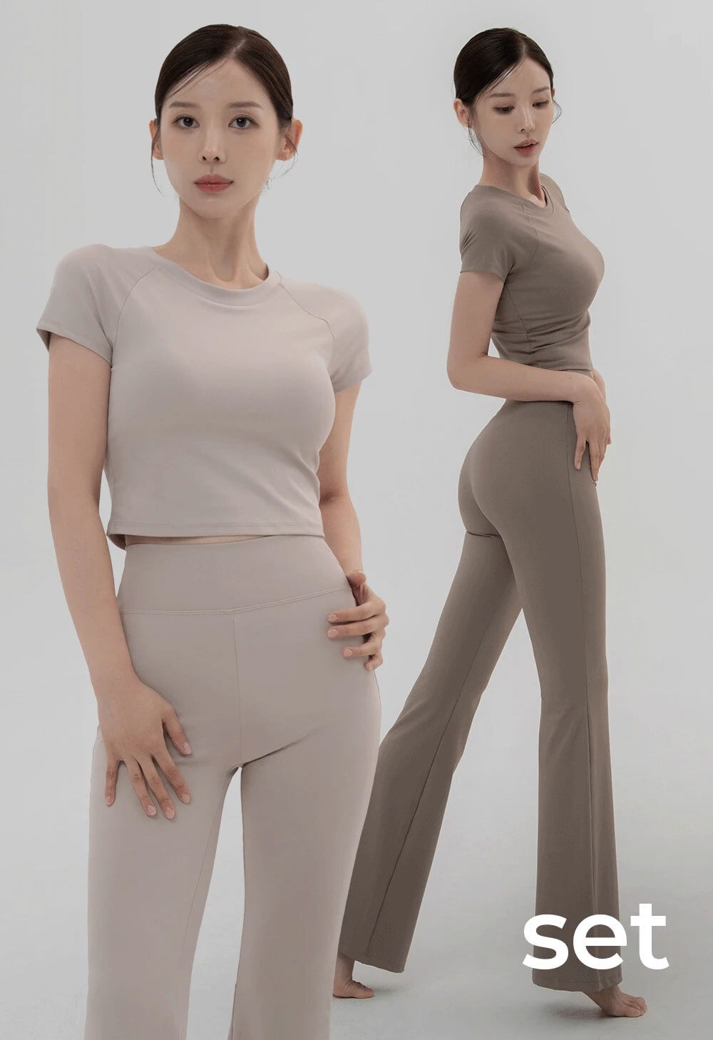 [SET] Conch All-in-One Crop Top+Wild Bootcut Leggings <Cotton Ivory&AUTUMN BROWN>【SET-141】