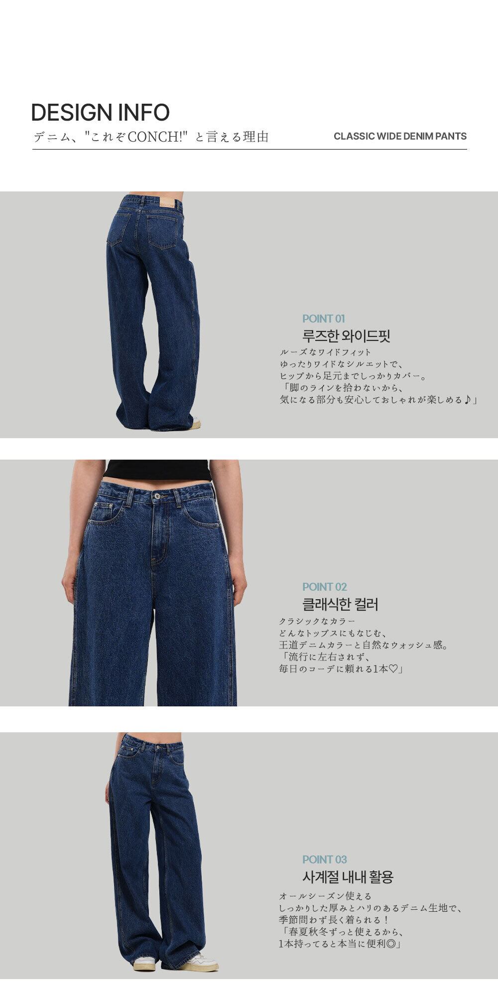 [CONCH DENIM] Classic Wide Denim Pants, Deep Blue【BOTTOM-148】