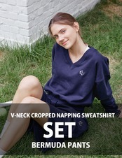 Conch V-neck Cropped Napping Sweatshirt + Bermuda Pants SET (3colors)