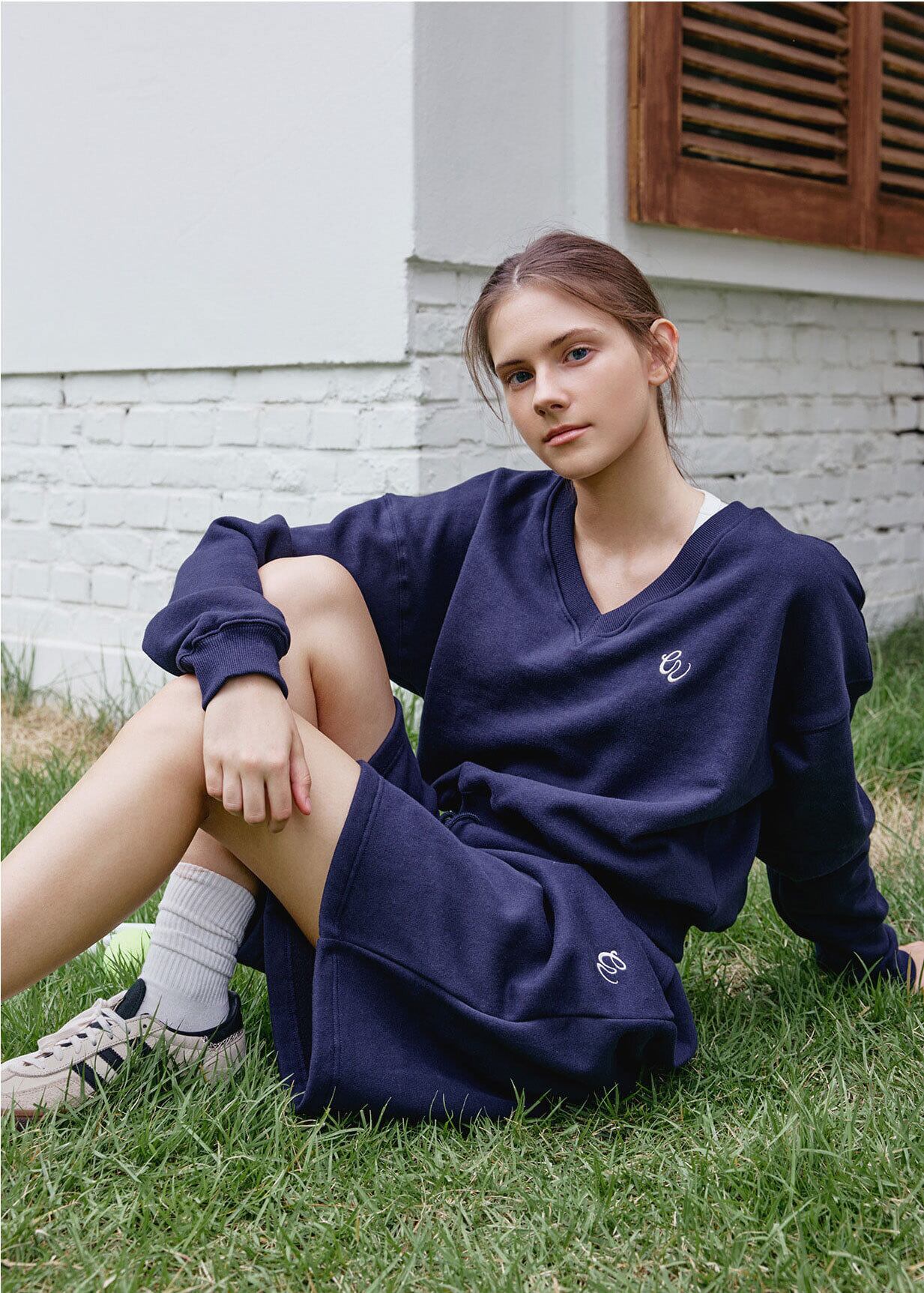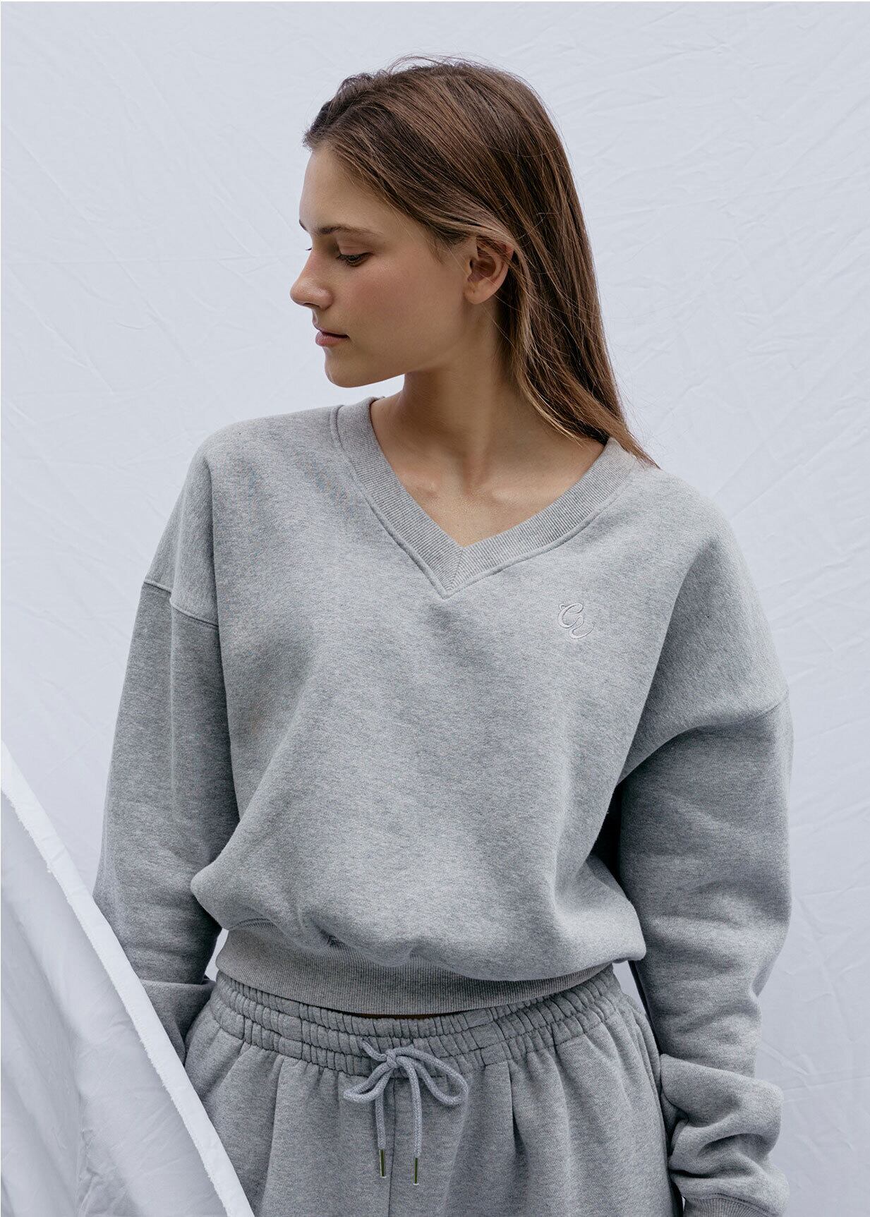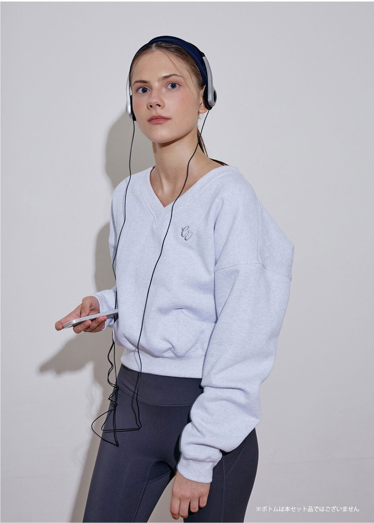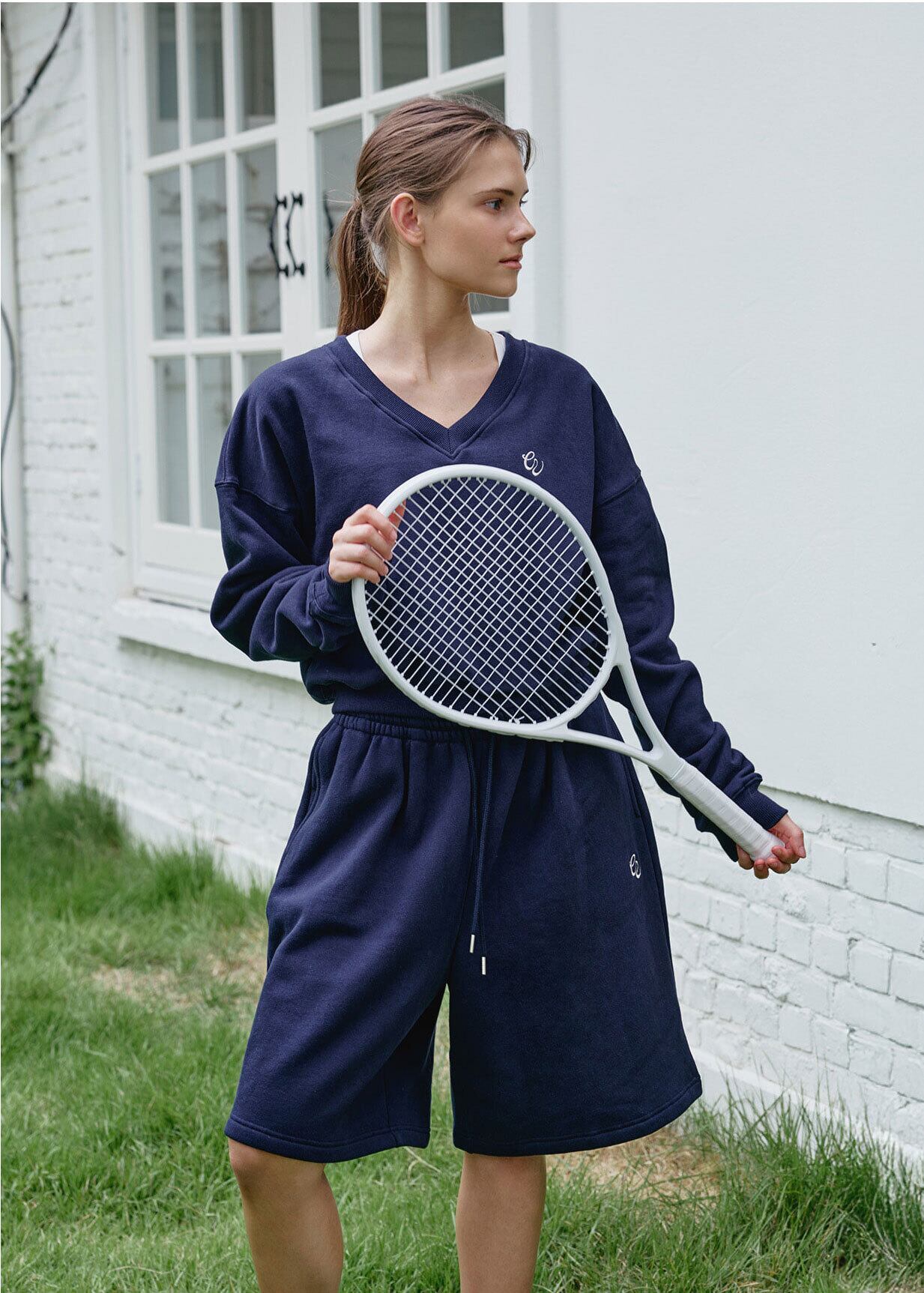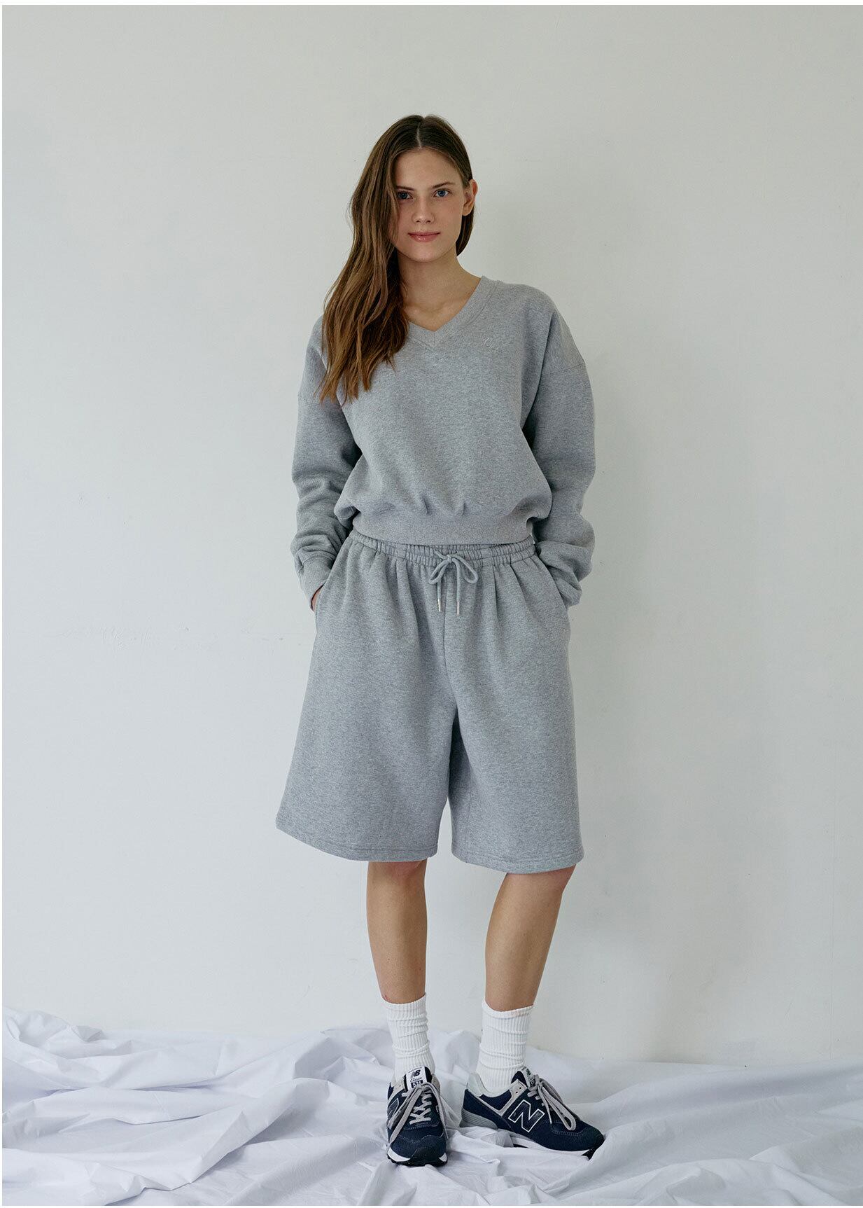 Conch V-neck Cropped Napping Sweatshirt + Bermuda Pants SET (3colors)【SET-147】