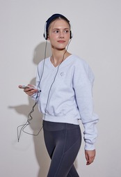 深めのVネックと余裕のあるシルエットで、女性らしい抜け感を演出しながら快適な着心地を実現。
