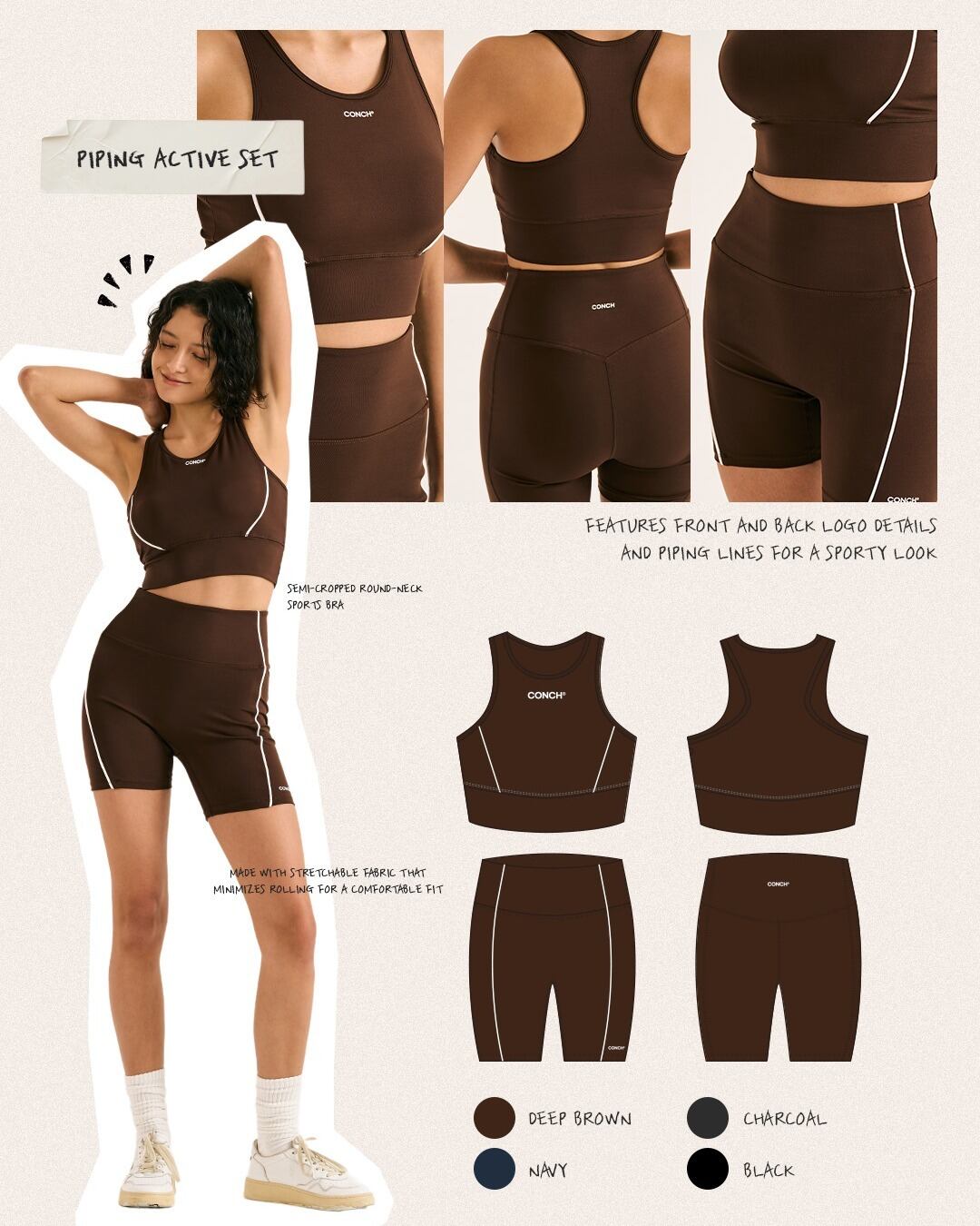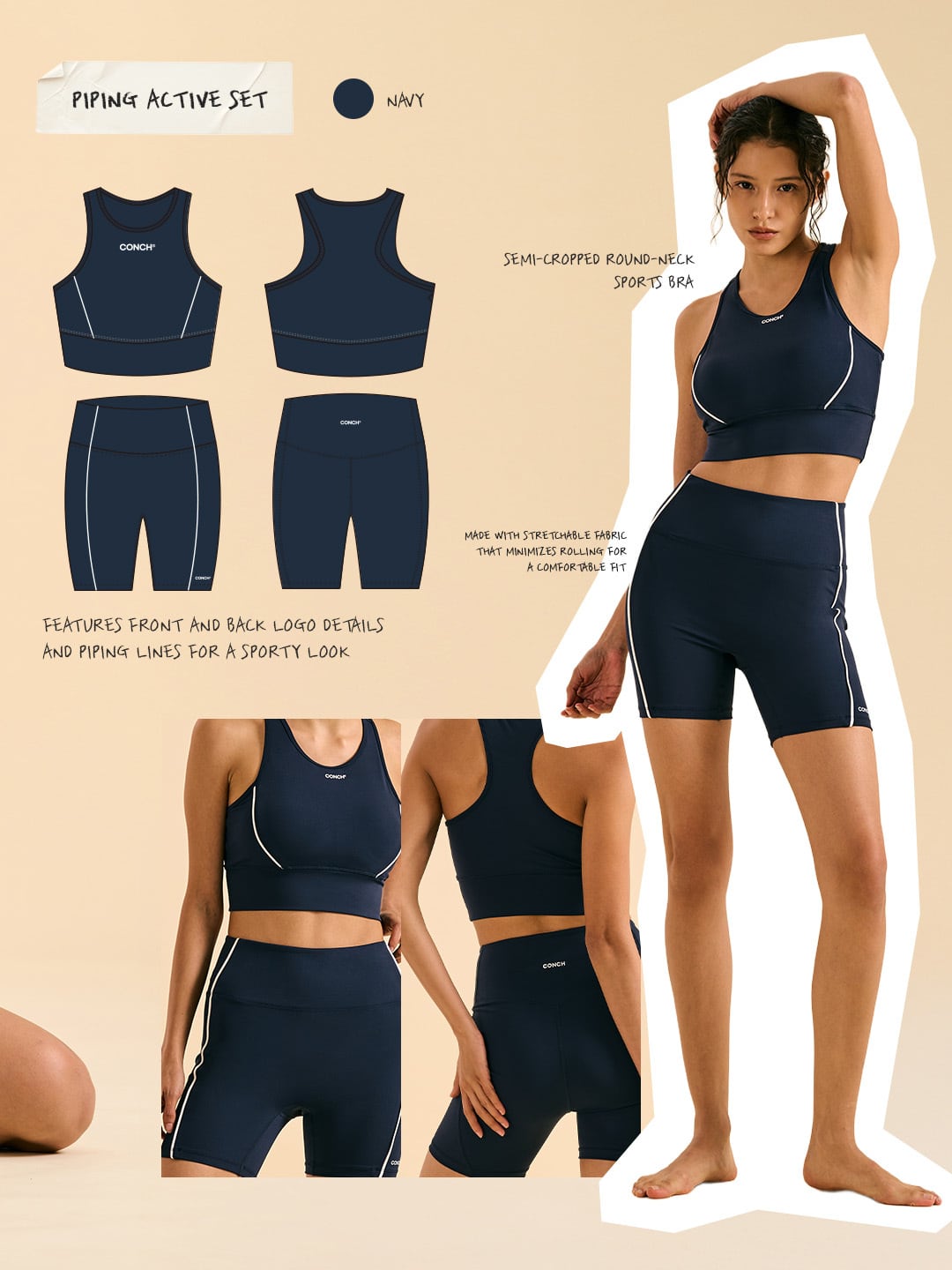 Piping Active Sports Bra & Piping Active Three-Part Leggings (4colors)