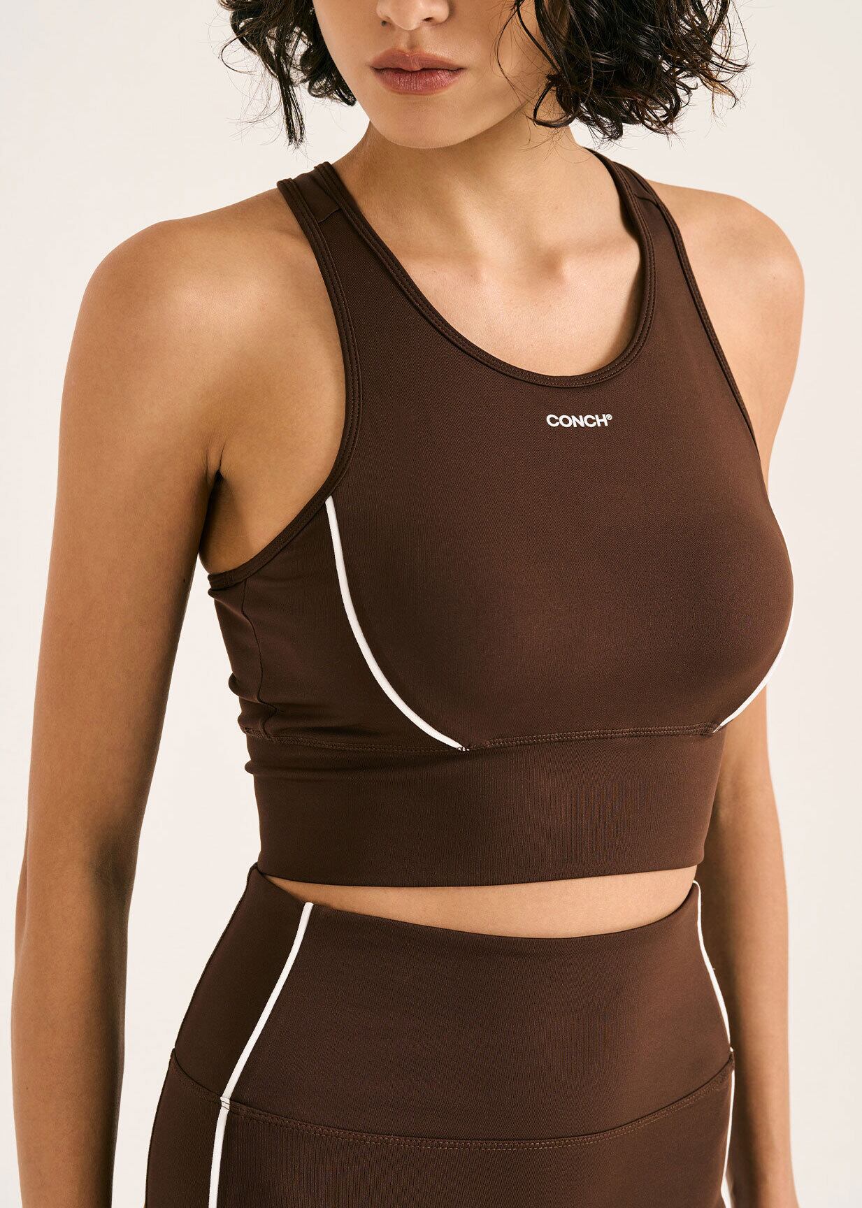 ブラトップは胸元のロゴとパイピングラインがアクセント。