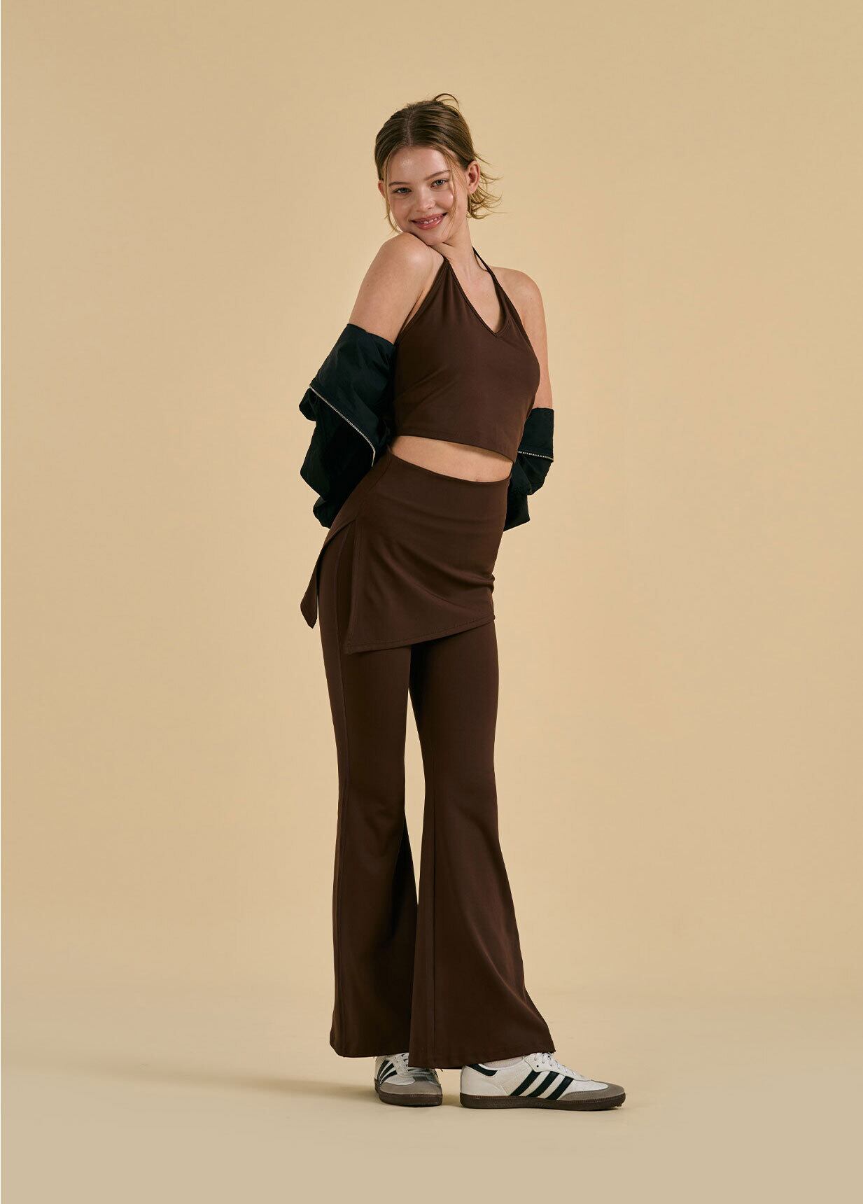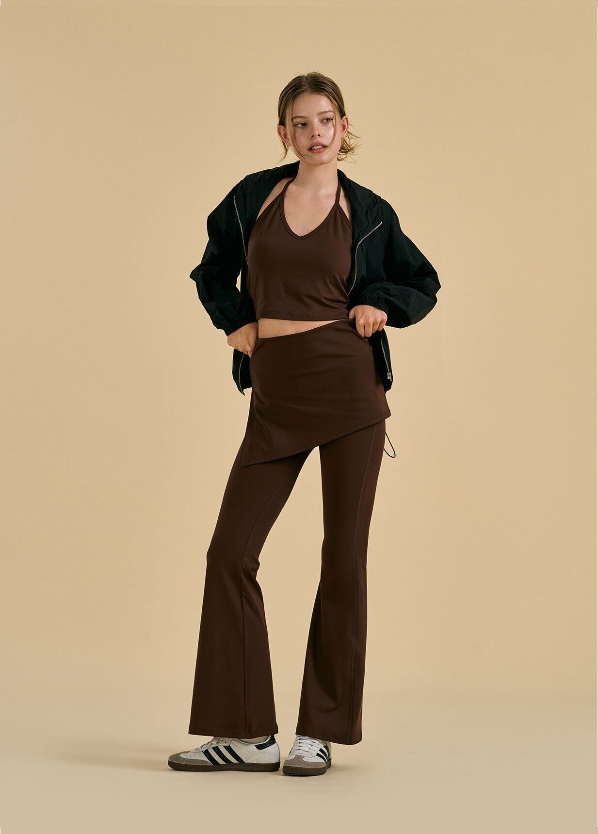 レギンスやショーツの上に重ねるだけで、ヨガ・ピラティスから日常まで幅広く活躍します。