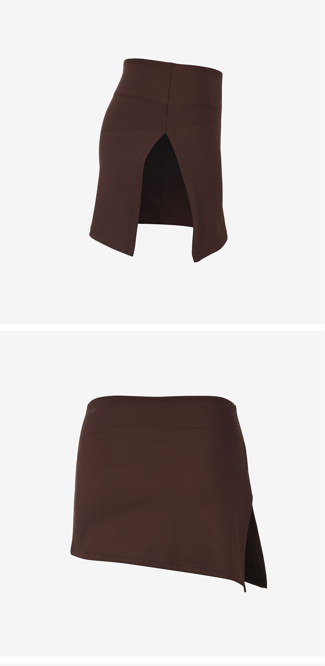 アンバランスな丈感とサイドスリットが、重く見せず洗練された印象を演出。