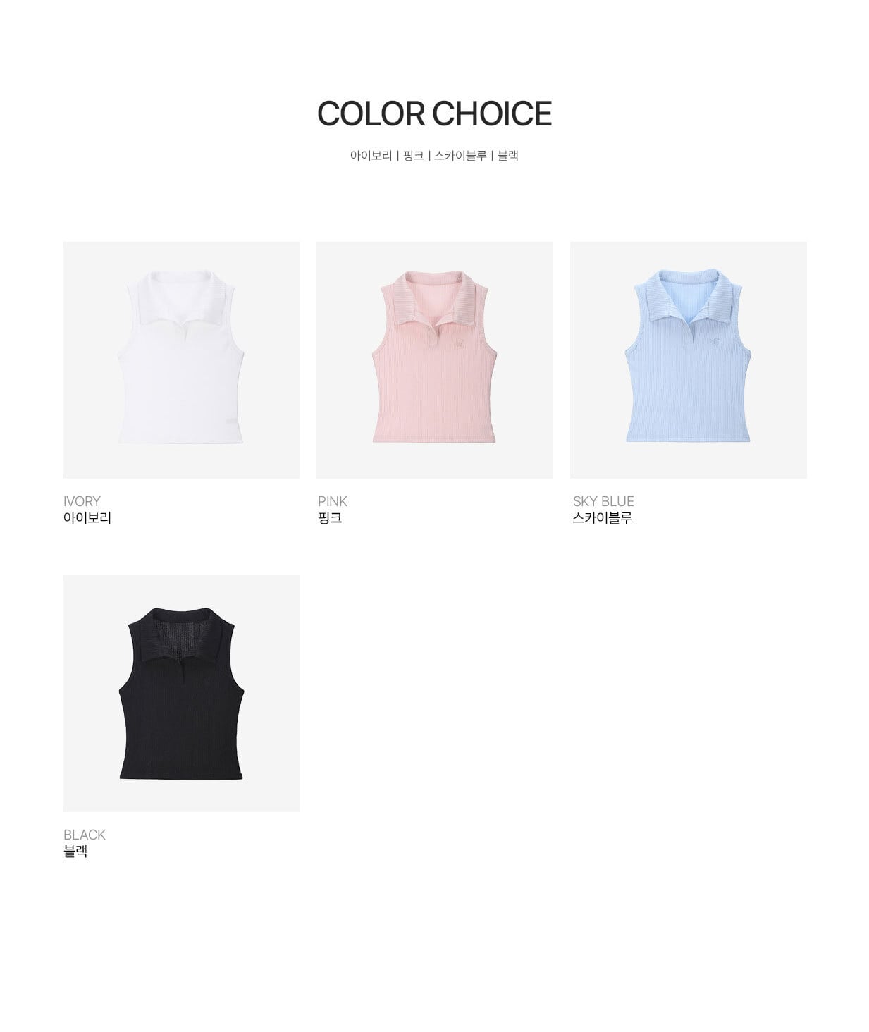 Open Collar Ribbed Sleeveless(4colors / FREE)